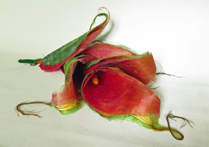 2019Ruimtelijk textiel object van zijdevezels en Tyvek. Door natuur geinspireerde vormgeving